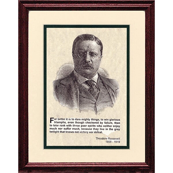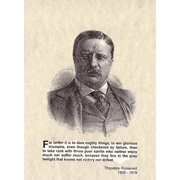 A - Far better it is to dare mighty things, to win glorious triumphs, even though checkered by failure, than to take rank with those poor spirits who neither enjoy much nor suffer much, because they live in the gray twilight that knows not victory nor defeat.