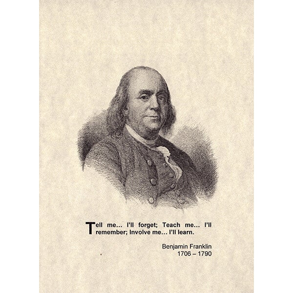 F - Tell me… I’ll forget; Teach me… I’ll remember; Involve me… I’ll learn.