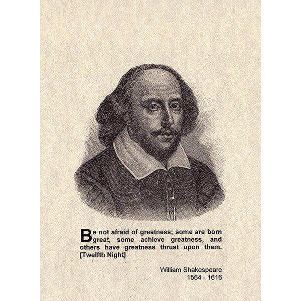 A - Be not afraid of greatness; some are born great, some achieve greatness, and others have greatness thrust upon them. [Twelfth Night]