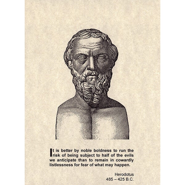 A - It is better by noble boldness to run the risk of being subject to half of the evils we anticipate than to remain in cowardly listlessness for fear of what may happen.